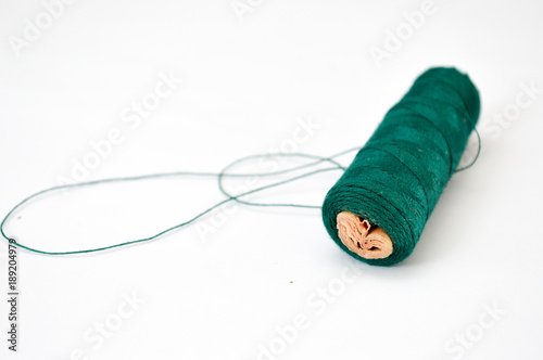 rope, bobbin, colours, cotton, craft, embroidery, hobby, industry, isolated, material, nobody, object, green, reel, sew, sewing, spool, string, tailor, textile, thread, white, work, shallow dof