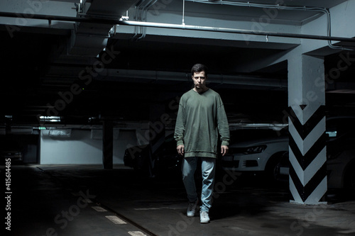 man, parking, underground, car park, dark, young, people, person, boy, travel, city, businessman, walk, street, walking, urban, aerodrome, alone, standing, train, portrait, guy, corridor, building, casual attire, car park, parking, parking place, subway, strong, hate, oversize
