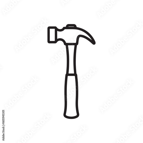 The hammer head and handle are clearly depicted in a minimalist, outline-style illustration. This type of icon or symbol is commonly used to represent tools, construction, or repair-related concepts i