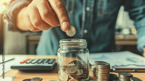 business, office, hand, finance, money, desk, coin, savings, calculating machine, budget, accounting, investment, stack, growth, cash, currency, piggybank, planning, wealth, saving, household, economy, management, financial, commerce, corporate, banking, paperwork, jar, deposit, income, capital, cashflow, prosperity, accumulation, earning, asset, reserve, count, thrift, tax