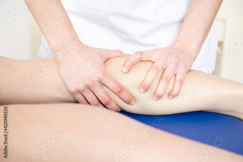 calf, care, caucasian, female, health, leg, male, man, massage, massaging, massager, masseuse, medicine, muscle, patient, physical therapist, physical therapy, professional, rehabilitation, relaxation, shirtless, healer, therapy, treat, treatment, white, woman, work, young