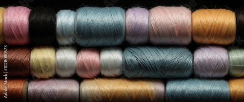 The harmony of thick threads in pastel colors on a black background, the threads are centered