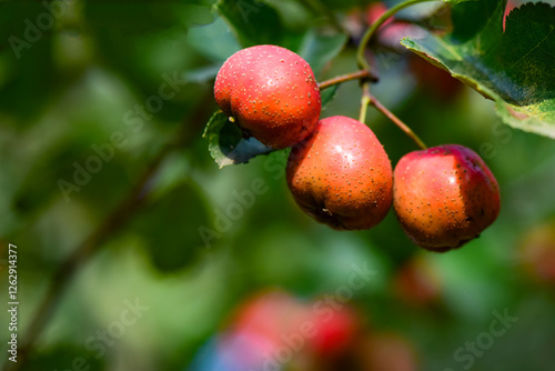 The hawthorn tree is covered with ripe red hawthorn fruits, creating a scene of abundant hawthorn harvest