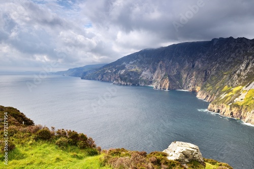 storm cloud, dark clouds, animal, farm animal, farmland, sheep, cliff, sea, coast, atlantic ocean, mountain, ireland