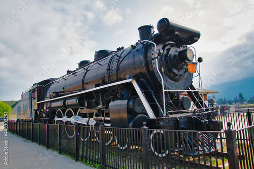 The historic Canadian National locomotive placed beside the Jasper station. Jasper AB Canada