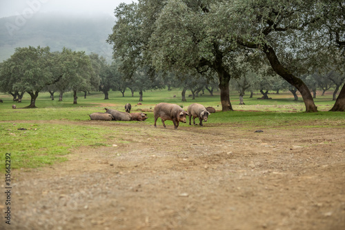 horse, animal, nature, grass, field, horse, farm, landscape, meadow, herd, grazing, green, brown, pasture, summer, wild, sky, animal, mammal, rural, cattle, countryside, cow, blue, tree, eat, background, moor, hog, farming, baby pig, baby pig, estremadura, porcine, eating, holm, meat, iberian, ham, pig, acorn