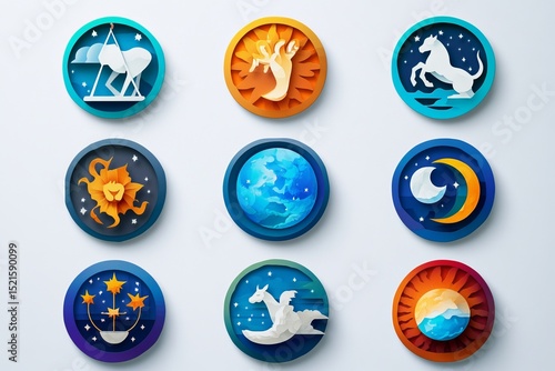 zodiac, horoscope, astrology, signs, vector, illustration, symbol, design, hand, palm, icon, isolated, set, paper, cut, origami, three-dimensional, volumetric, magic, mystic, fortune, reading, occult, culture, happy, background, sunlight, sun, silhouette, new, oriental, traditional, chinese, space, year, esoteric, china, animal, light, graphic, astronomy, art, decoration, moon, star