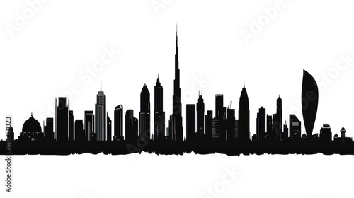 The iconic dubai skyline showcases its modern architecture and urban landscape in silhouette isolated on transparent background