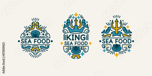 signs, sea, seafood, food, design, emblem, symbol, vector, fish, eatery, market, badge, illustration, icon, label, ocean, vintage, set, nautical, sticker, shop, stamp, insignia, collection, fresh, salmon, seal, logotype, graphic, banner, traditional, quality, bar, animal, background, premium, business, style, menu, meal, water, cook, fishing, old, cafes, shell, crown, trident, king