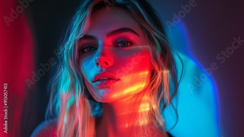 portrait, beauty, woman, blue, face, person, fashion, model, bright, young, style, red, trendy, make-up, female, neon, caucasian, vogue, art, light, colours, posing, background, pink, many-coloured, high, disco, make-up, high-coloured, purple, glamour, hair, adult, coiffure, lip, gorgeous, attractive, trend, makeover, studio, make up, shine, colourful, skin, party, dark, glowing, many-coloured, pretty
