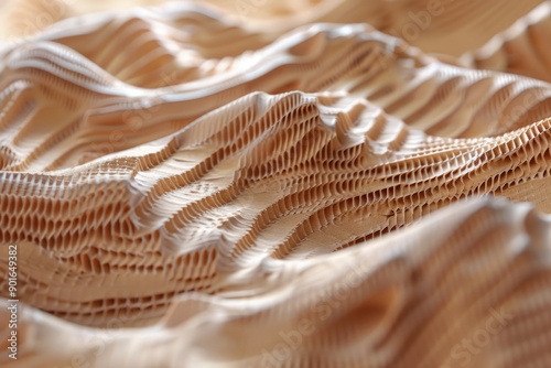 The image is a close up of a piece of paper with a wave pattern. The paper is brown and has a grainy texture. The wave pattern is made up of small, thin strips of paper that are overlapping each other