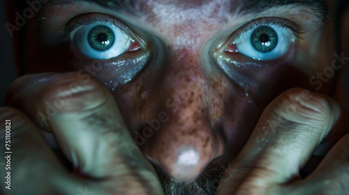 The intense gaze of a gamer eyes fixated on the screen as their fingers move quickly and precisely on the mouse and keyboard.