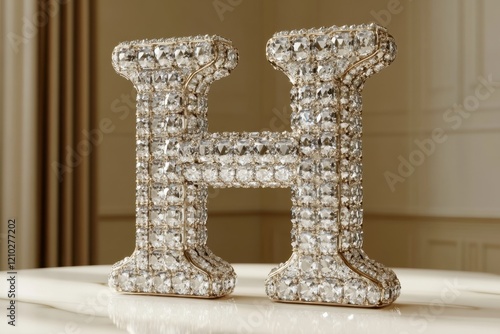 The letter H is made of shiny, glittery beads