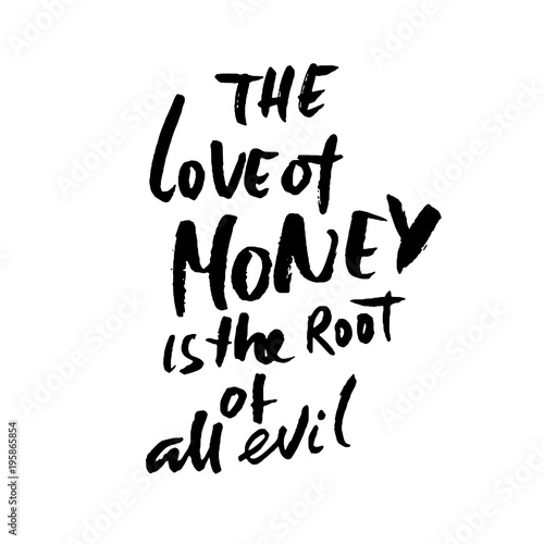 The love of money is the root of all evil. Hand drawn lettering. Vector typography design. Handwritten inscription.