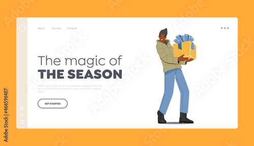 The Magic of the Season Landing Page Template. Character Prepare Present for Christmas and Winter Holidays Celebration