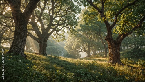The magical forest vista looks like a scene from an ancient realm.