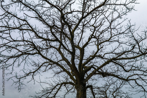 The melancholy of a tree with its dry branches on a cloudy winter day