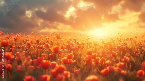 The Mesmerizing Harmony: A Poppy Field Illuminated by Enchanting Sun Rays