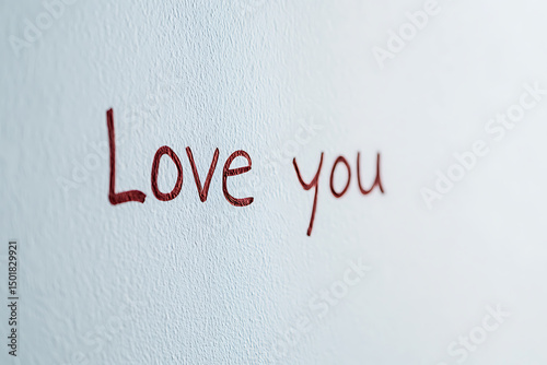 The message "Love you" is written in red on a white background, possibly on a wall. It has a casual feel.