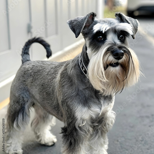 The Miniature Schnauzer is a small, spirited dog known for its distinctive beard, alertness.