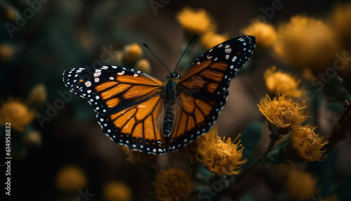 The monarch butterfly vibrant wings pollinate a single flower generated by AI