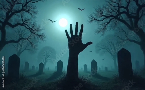 halloween, night, moon, silhouette, tree, dark, illustration, horror, sky, vector, scarey, bat, skittish, holiday, cemetery, zombie, cemetery, black, landscape, cross, nature, hand, evil, cartoon, fear