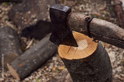 firewood, log, wood, axe, timber, wooden, forest, cut, tool, timbering, stump, tree, axe, handle, nature, chop, old, background, metal, hatchet, equipment, blade, logging, closeup, stack, fire, lumberjack, work, hack, sharp, natural, outdoors, bark, pile, trunk, energy, cleaving, winter, fuel, splitting, stacked, chopped