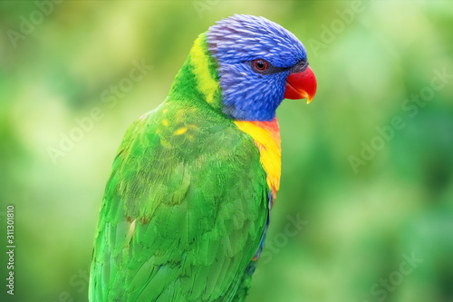 The parrot's rainbow lorikeet in a natural environment. Close-up of the bird in the wild