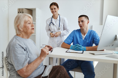 the patient communicates with the nurse in the doctor's office diagnostics