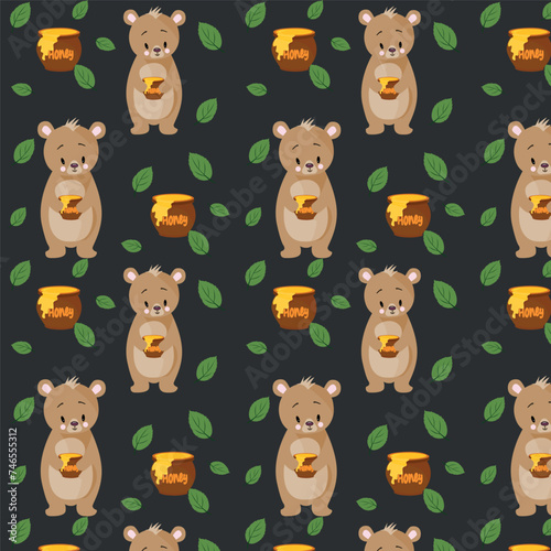 The pattern for printing. Vector children's illustration, forest animals. Bears and honey.