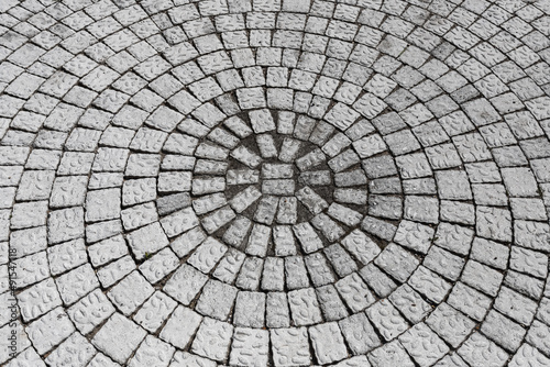 The pavement of granite cobblestones. Old city road