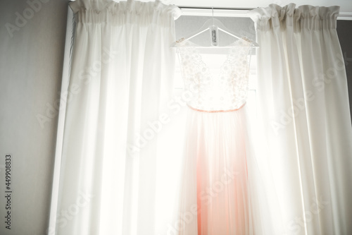 The perfect wedding dress in the room of the bride