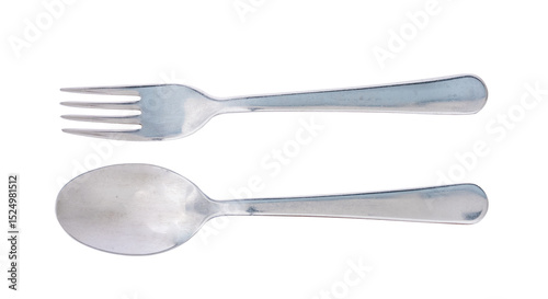 The Photo of kitchenware, Spoon and fork, on a white background, taken with a 45Mp high resolution camera.