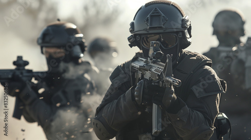 The police are taking part in intensive training exercises. Participants dressed in full tactical equipment, simulating real threat situations.