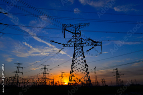 station, structure, substation, sky, resource, outdoors, sundown, supply, voltage, wire, work, volt, transmission, technology, tower, transformer, metal, pylon, energy, engineering, equipment, distribution, colours, danger, facility, electricity, evening, infrastructure, twilight, electric, sunset, dusk, cable, supplying