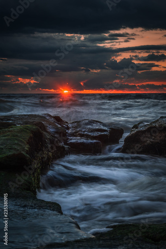 seascape, sunrise, beach, water, landscape, sky, ocean, sun, nature, coast, cloud, wave, horizon, wave, sea, red, beautiful, light, cloud, summer, dawn