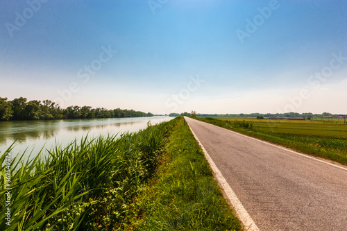 landscape, nature, river, adige, water, sky, road, asphalt, travel, venetia, italy