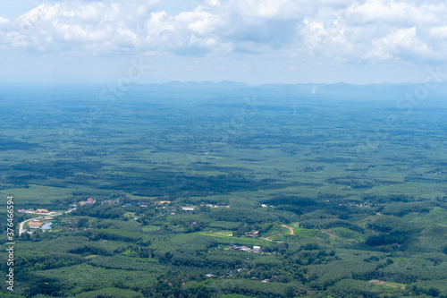 The scenery from the peaks in the rainy season is in Nakhon Si Thammarat Province in the south of Thailand