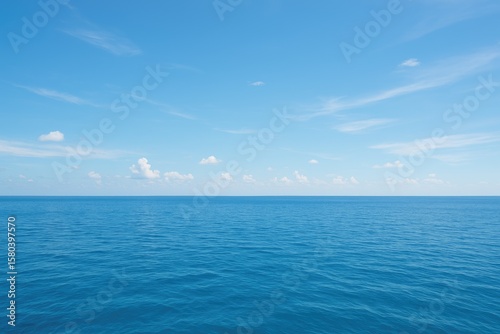 The seamless blend of ocean and sky at the horizon with a scenic backdrop