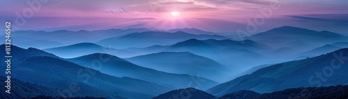 The serene mountain range at sunset exudes an aura of darkness and mystery