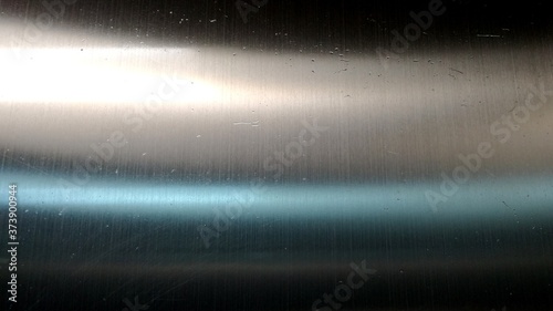 The shiny stainless steel surface is caused by light shining down on the metal surface.