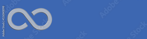 The sign of infinity is silver, isolated on a blue background. Symbol of infinity. Banner for insertion into site. Place for text cope space. 3D image. 3D rendering.