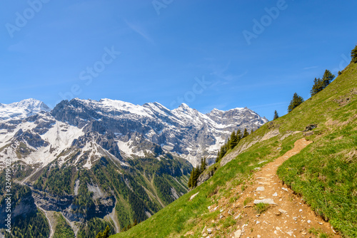 The Swiss Alps at Murren, Switzerland. Jungfrau Region. The valley of Lauterbrunnen from Interlaken.