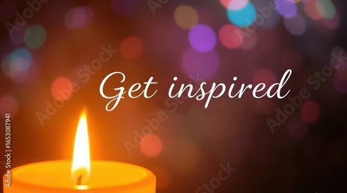 The text "Get Inspired" in the flickering colors of warm candlelight