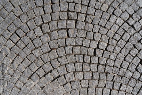 The texture of paving stones on the road or sidewalk, in a semicircle. Pavement paving, texture, design template