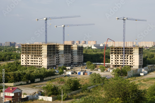building, house, apartment, housing, bungalow, architecture, city landscape, technology, installation, development, industry, tower block, structure, material, crane, mechanism, equipment, rise, descent, freight, beam, plate, overlapping, monolith, brick, facades, cement, solution, glasses, concrete, reinforced concrete, window, wall, roof, aperture, balcony, floor, ladder, mortgage, credit, prospect, area, city, suburb, sky, cloud