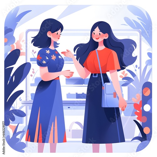 portrait, client, lifestyle, cheerful, purchase, shopping, buying, female, fashion, beautiful, young, happy, talking, woman, smiling, girlfriend, market, mall, friendship, human relationships, elegant, center, store, shopping centre, enjoy