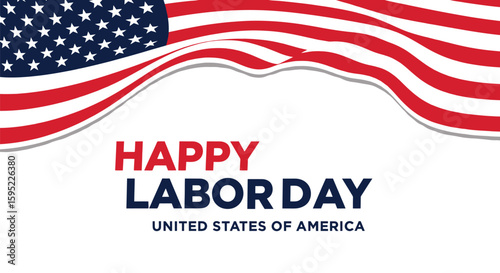 The United States flag waves gently above the greeting Happy Labor Day to everyone