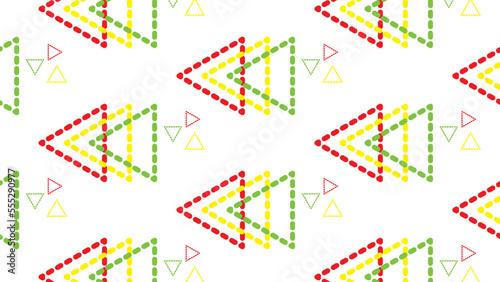 The vectors illustration seamless pattern of abstract triangle dash line three tone colored red yellow green background