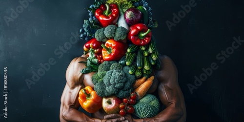 food, man, vegetable, colourful, balance, whimsical, playful, creativity, unique, quirky, amusing, hat, produce, farmer, market, fresh, healthy, organic, sustainable, urban, farming, harvest, nourishment, lifestyle, fashionable, fun, agriculture, trendy, greener, diet, wellness, living, capsicum, carrot, radish